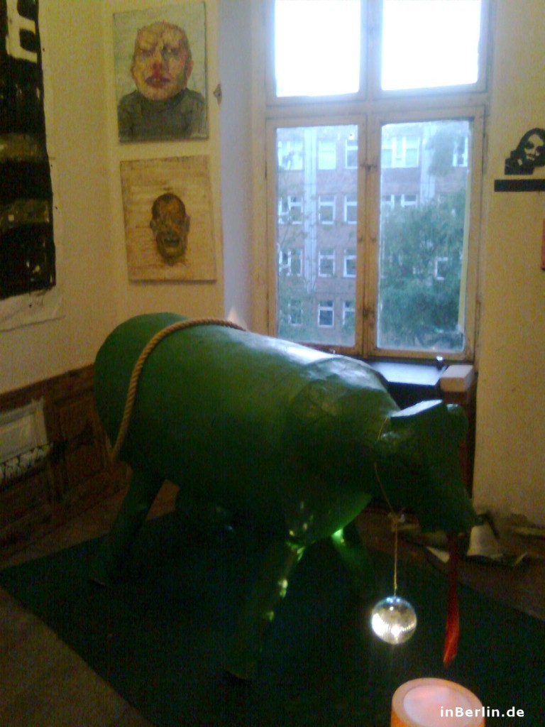 Zurück zu den eigentlichen Wohnungen, manchmal waren sie als solche zu erkennen manchmal aber wiederum auch nicht. Da kann die Küche auch eine eingebaute angehobene Dusche haben, was als Karaoke-Podest genutzt wurde. Letztendlich kann es für einige Normalbürger wie ein schräger Film gewirkt haben, beim entlang schlendern in diesen Räumlichkeiten! Mehr Eindrücke bietet die Bildergalerie, wobei die Bilder leider nicht die Topqualität einer Spiegelreflexkamera haben. Die Handykamera musste für diese Bilder herhalten, natürlich ohne Blitzlicht! Ich denke die Bilder haben so noch eine spezielle Note bekommen, mit dem gewissen Unscharfen und Verrauschten! Meinungen können wie immer in den Kommentaren oder auf der inBerlin.de-Facebook-Seite kundgetan werden! Ansonsten sei noch auf die Kolonie Wedding verwiesen, wo sich gerade eine vielfältige Kunstszene entfaltet, die auch Thema der neuen inBerlin Kieztour Wedding sein wird (Start: 14.05.2011).