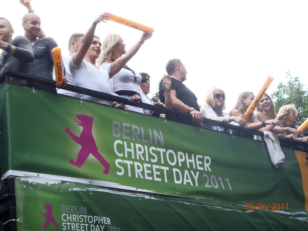 Fotos habe ich auch gemacht, aber die sind nicht gut geworden. Meine Cam ist zu schlecht. Aber ich habe eine Seite entdeckt, die hat auch ganz viele gute Pics, vielleicht könnt ihr die zusammenschmeissen: http://blikeberlin.wordpress.com/2011/06/27/csd-berlin-2011-fotos-von-der-christopher-street-day-parade-2/