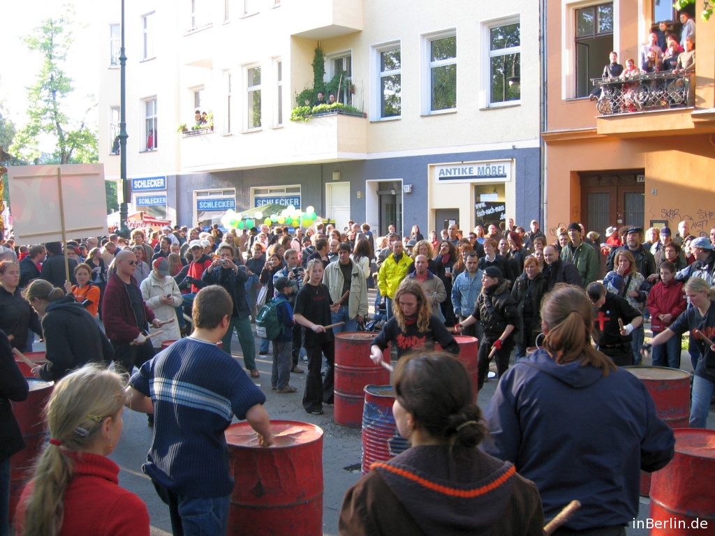 Des Weiteren bietet das Rahmenprogramm ein Straßenfest rund um den Blücherplatz (U Bhf. Hallesches Tor, U Bhf Mehringdamm) im oben genannten Zeitraum mit vielen Ständen zumeist mit Welt-Waren aller Art. Sowie viele Bühnen mit Musik aus allen Ecken unseres Planeten, angefangen von Brasilianischer Pop-Musik, mexikanischen Folkoretänzen, türkische Musik aller Art, ungarischer SpeedFolk, Taigatunes (SovietGrooves) bis hin zum Berliner Ölfasskollektiv! Visuelle Impressionen der letzten Jahre sind in der angehängten Bildergalerie zu bestaunen! Viel Spaß beim Anschauen! Eigene Eindrücke können gerne im Kommentarbereich hinterlassen werden!