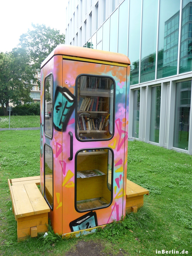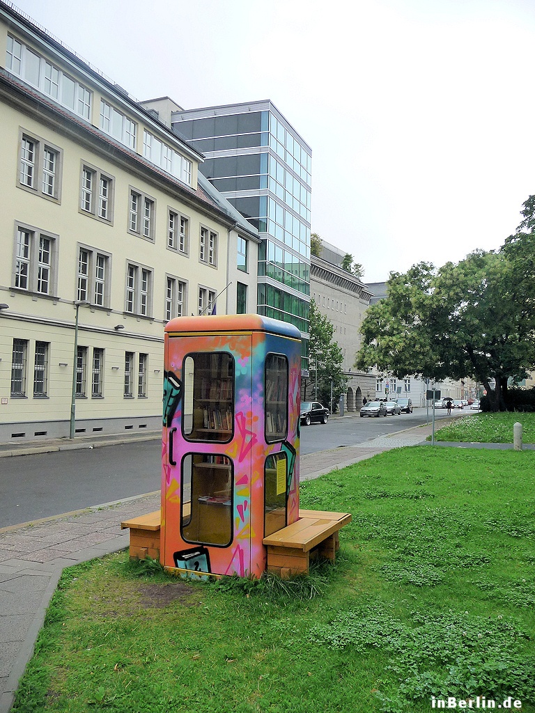 Neben den schon bekannten Bücherbäumen und den Giveboxen ist dem Autor, in Berlin-Mitte auch folgende Bücher-Austauschstätte (neudeutsch: Bookcrossing) über den Weg gelaufen. Gemeint ist eine ehemalige quietschgelbe Telefonzelle der Marke Deutsche Post/Telekom. Nun in neuer Funktion, äußerlich ein bisschen farblich verschönert mit Sitzplatzanbau und im inneren erwartet dem Gast eine reichliche Bücherauswahl. Natürlich funktioniert das ganze nur, wenn jeder mal was gibt und was nimmt. Weitere Impressionen können aus der folgenden Bildergalerie entnommen werden!