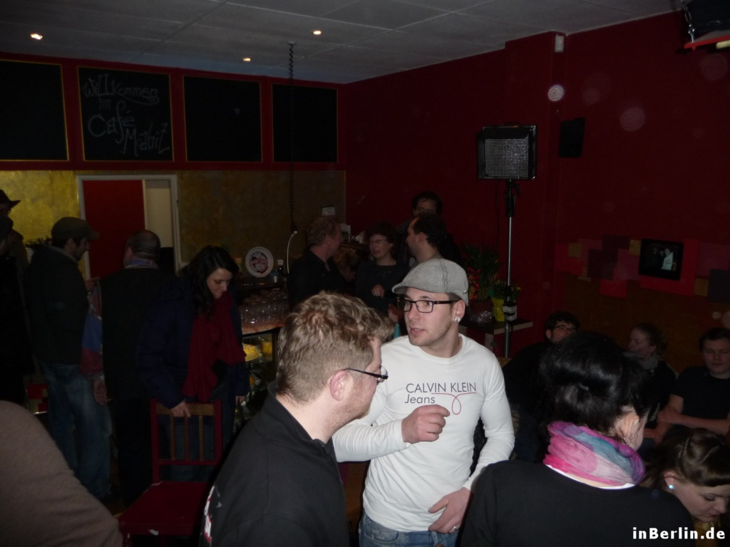 In der Regel wird von Di-Sa 11 bis 19 Uhr geöffnet sein und das ab dem 1.März. Abends gibt es an manchen Tagen wechselnde Veranstaltungen wie Kiez Bingo, Poetry Slam und musikalische Einlagen. Hier ein paar Schnappschüsse von der Eröffnung, mit da waren Gitarre Moabit, DJ Easy, Comedians Der Tod & Freddy Farzadi, Karl Heinz Helmschrot – Jonglage, LURICAUNS (Gitarre/Percussion/Gesang) und weitere. Wir wünschen viel Erfolg und das notwendige Quäntchen Glück dazu!