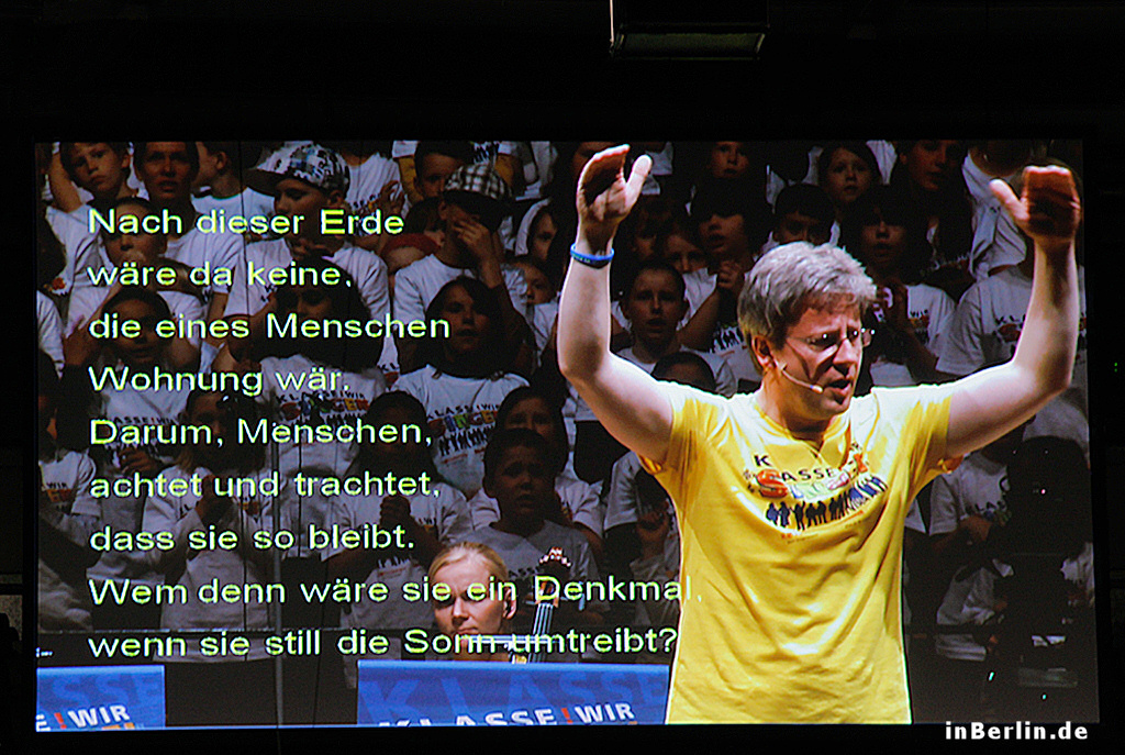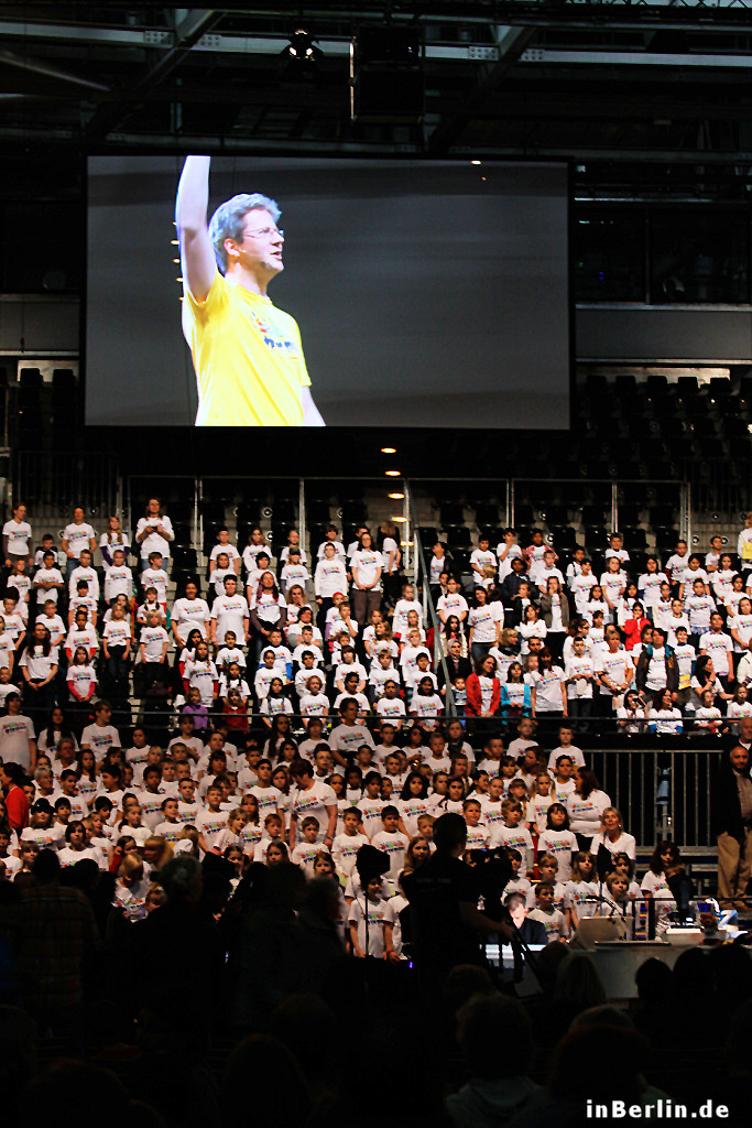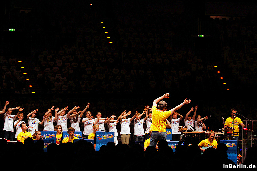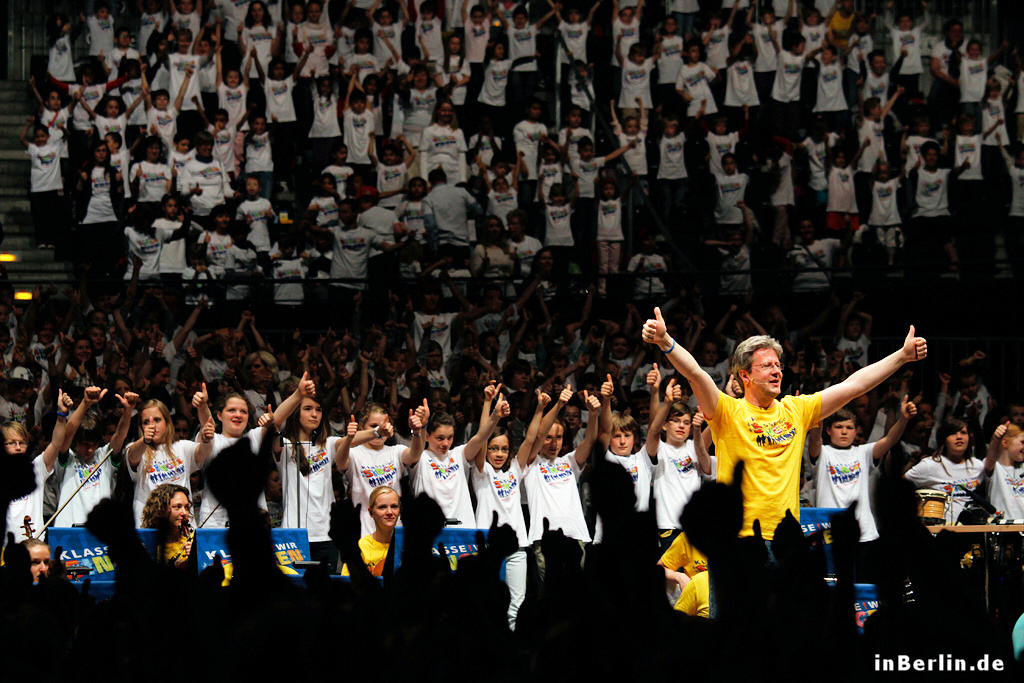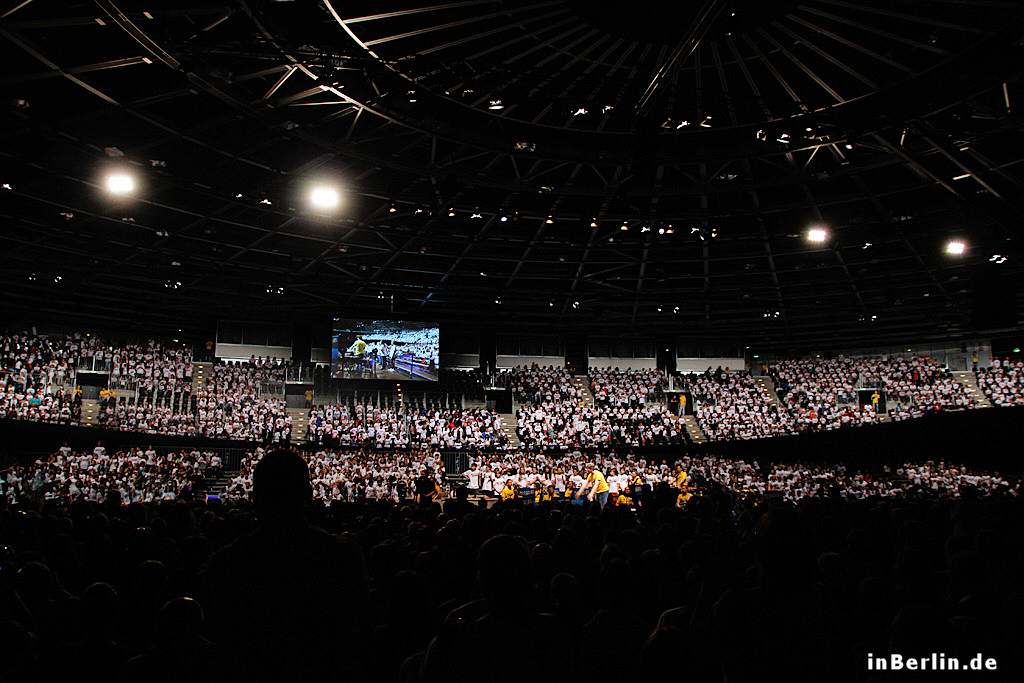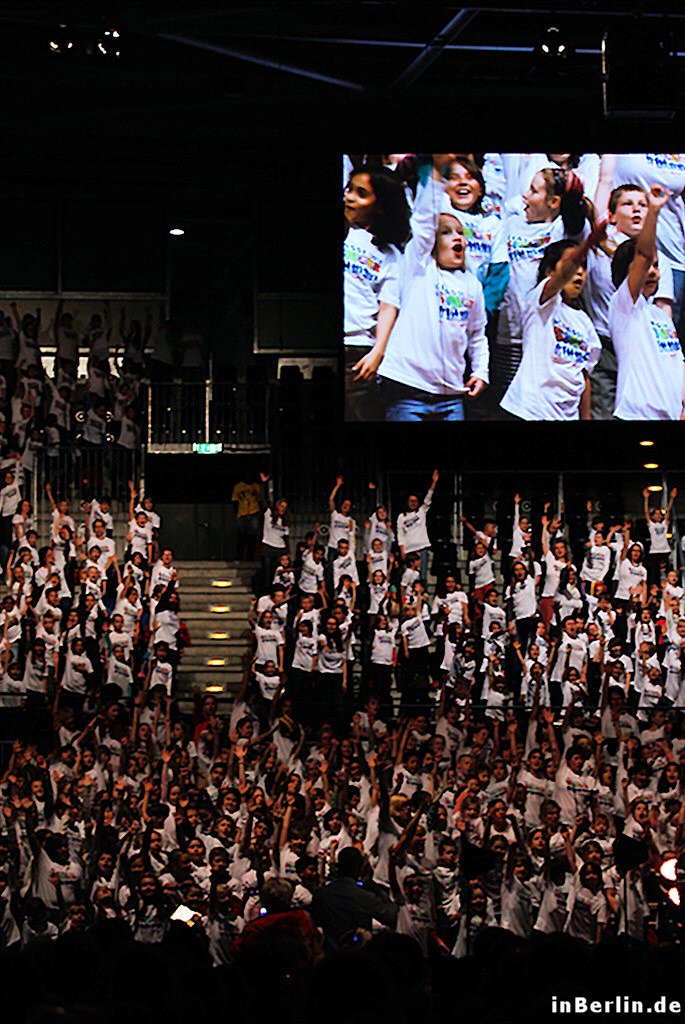 In den vergangenen sechs Wochen stand tägliches Proben im Klassenverband auf der Tagesordnung. Unter der Leitung des Berliner Domkantors Tobias Brommann gaben die Schülerchöre von rund 3.500 Schülerinnen und Schülern je Veranstaltung ausgewählte Kinderlieder zum Besten. Eine 12-köpfige Band begleitete die kleinen Stars auf der großen Bühne. Soviel singende Kehlen sorgten für Gänsehaut. Wir waren dabei, siehe folgende visuelle Bildergalerie. Kommentare sind natürlich immer willkommen.