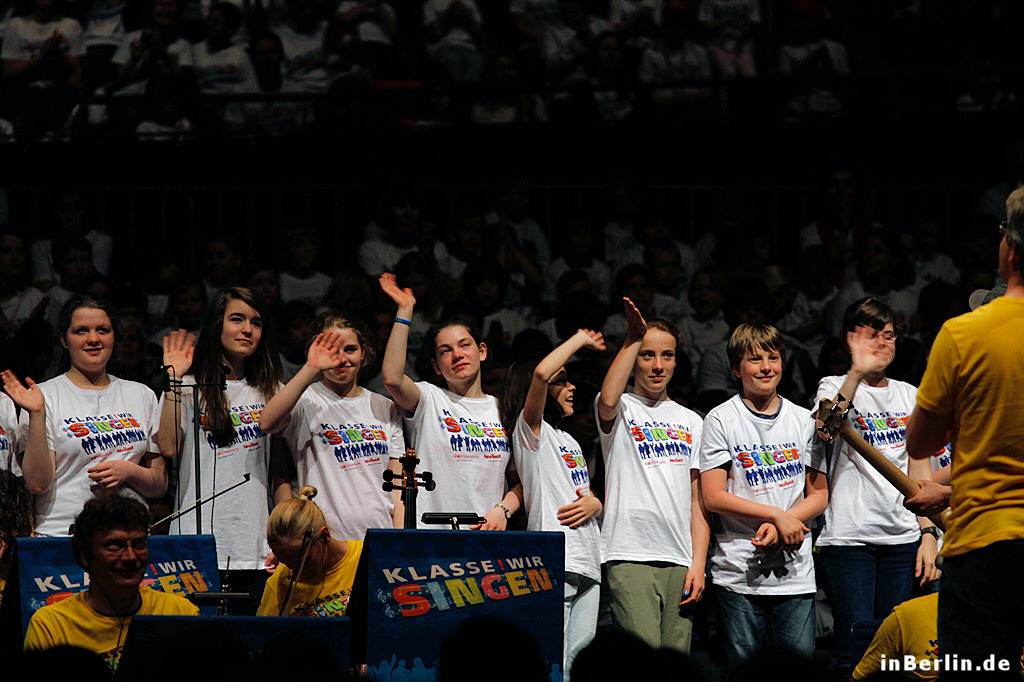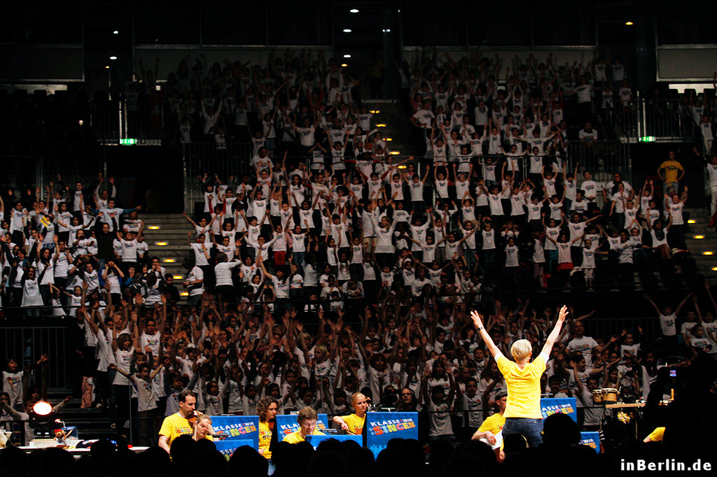 Das Berliner Velodrom an der Landsberger Allee ist ja bekannt dafür, Großveranstaltungen auszurichten. Diesmal waren es insgesamt 17.000 Grundschulkinder, die letzten Freitag und Samstag bei fünf Liederfesten zeigten was musikalisch in ihnen steckt. Es war das große Finale des Schulprojekts „Klasse! Wir singen“ mit Schülern der Klassen 1 bis 6 aus allen Stadtteilen Berlins fand das Event erstmalig in der Hauptstadt statt.