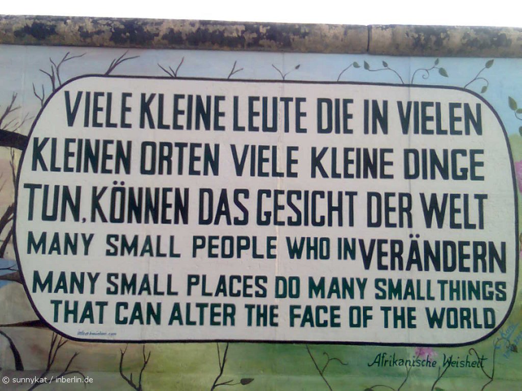 Hier ein paar Fotos von den Kunstwerken der East-Side Gallery. Zum Vergrößern einfach draufklicken. Mehr Fotos findet ihr in unserem Blogbericht über die East Side Gallery von 2010. Einen Überblick über die Künstler und ihre Bilder findet ihr auch hier.
