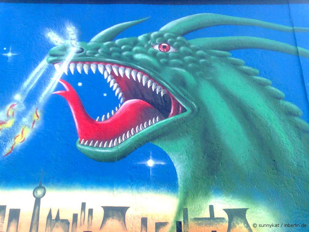 Die East Side Gallery ist eine der beliebtesten Touristenattraktionen in Berlin. Zu finden ist sie in Friedrichshain zwischen Ostbahnhof und Oberbaumbrücke, am Ufer der Spree gegenüber der O2-World. Mit rund 1,3 km Länge ist es das längste zusammenhängende Stück, was noch von der ehemaligen Grenzmauer übrig geblieben ist.Den kalten grauen Grenzcharakter hat sie schon lange nicht mehr, prangen doch lauter bunte Kunstwerke auf der wohl längsten Open-Air Gallery der Welt und ziehen täglich zwischen 2.000 – 3.000 Touristen an.
