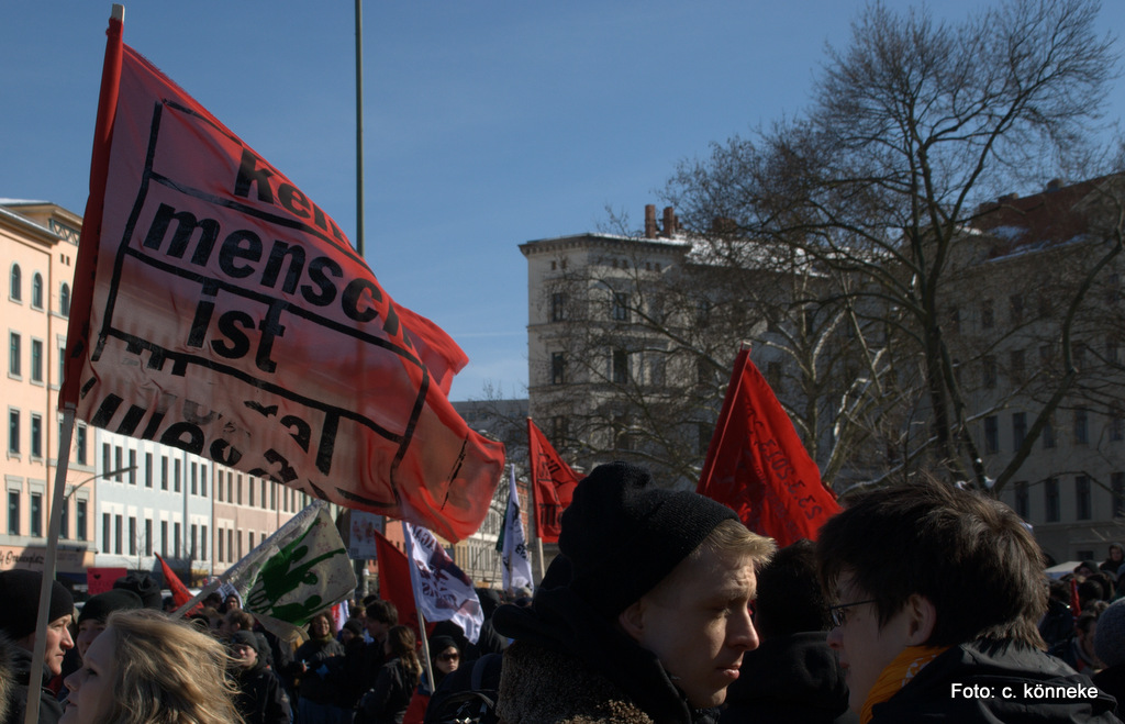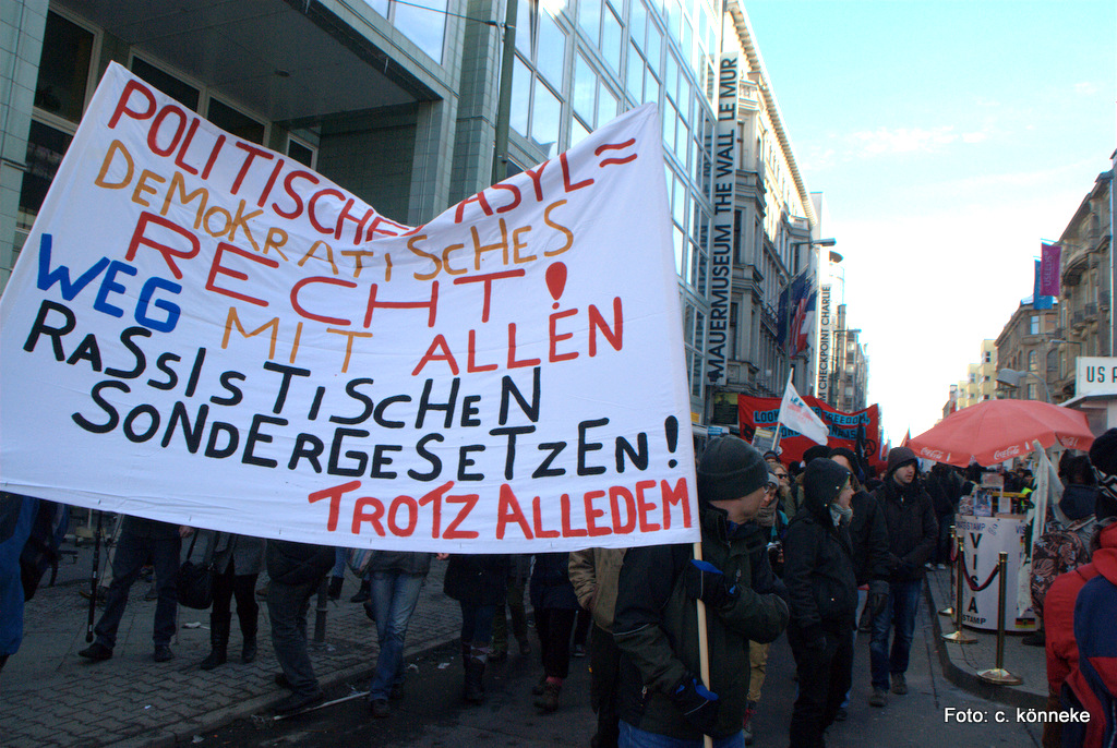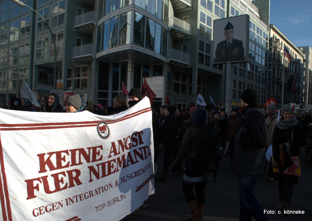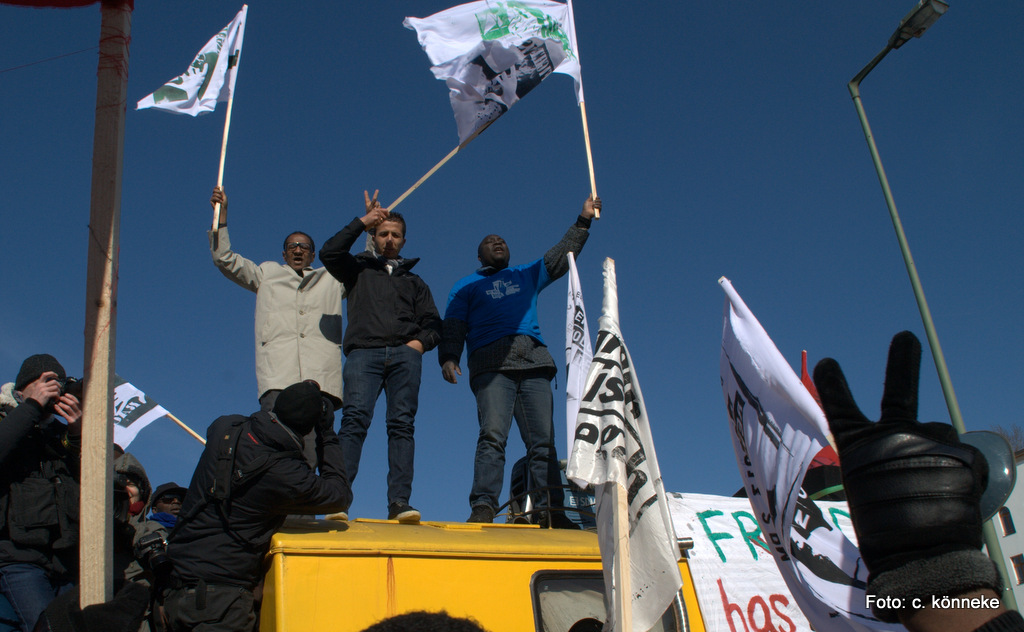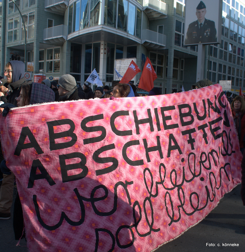 An einem Samstag, wo es in Berlin kälter war als in Sibirien… Klirrende Rekordkälte begleitet von großer Windstärke hat die Berliner nicht davon abgehalten, Samstag um 14 Uhr zum Oranienplatz zu gehen und den dort seit Monaten campierenden Flüchtlingen, ihre Solidarität zu bekunden. Berliner aller Couleur, Eltern mit teilweise kleinen Kindern, Studenten, Aktivisten von Nicht-Regierungsorganisationen und viele Migranten machten aus zunächst erwarteten 800, eine friedliche Demonstration mit 3000 Teilnehmern unter dem Motto „Revolution der Flüchtlinge“.