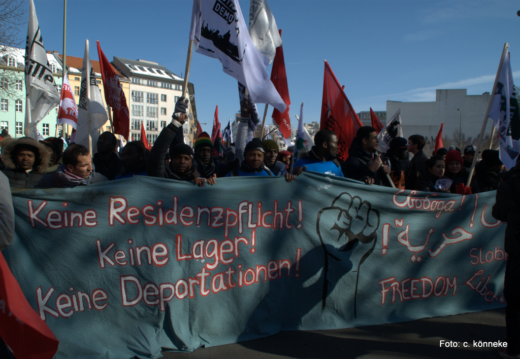 Der schon mehrere Monate andauernde Protest über die Asylpolitik der Bundesregierung streckt sich übers gesamte Bundesgebiet (Bayern, Bremen, Berlin) und fordert allgemein bessere Bedingungen für Flüchtlinge in Deutschland. Im konkreten aber fordern sie die Abschaffung der Residenzpflicht, eine gesetzliche Grundlage, die besagt, dass Flüchtlinge sich nur in den Landkreisen zu bewegen haben, denen sie zugewiesen wurden.