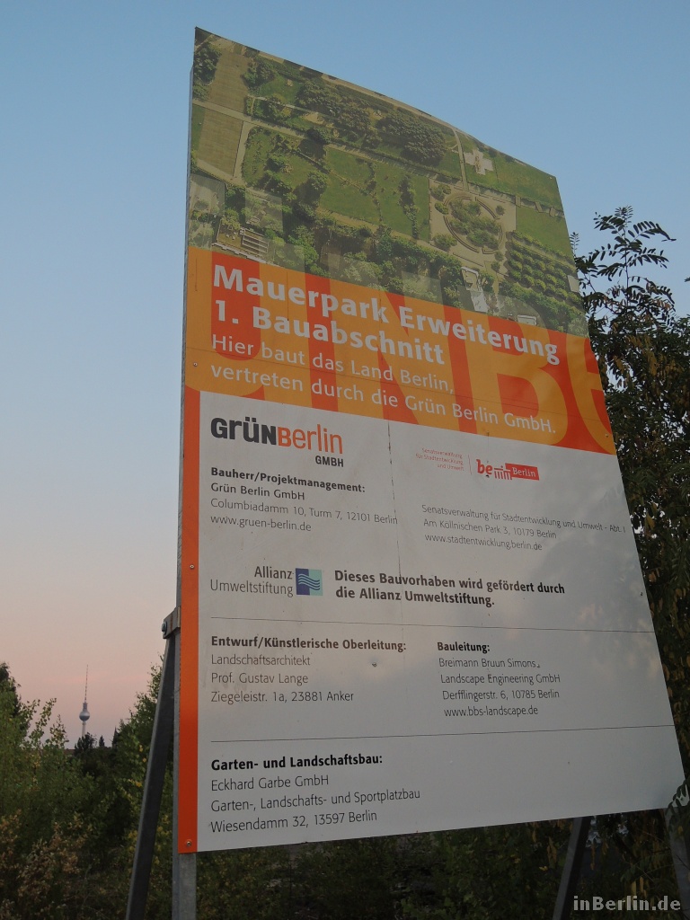 Nach vielen Jahren der Planung und Diskussionen, gab es am letzten Mittwoch, den 24.07.2013 die erste Mauerparkerweiterung. Jetzt gehören zwei weitere Hektar zum Mauerpark, welche im Stadtteil Wedding liegen. Das bedeutet auch, das jetzt ein direkter Weg (Fußgänger/Radfahrer) zwischen der Lortzingstraße im Wedding in den Mauerpark hinein bis zur Max-Schmeling-Halle führt.