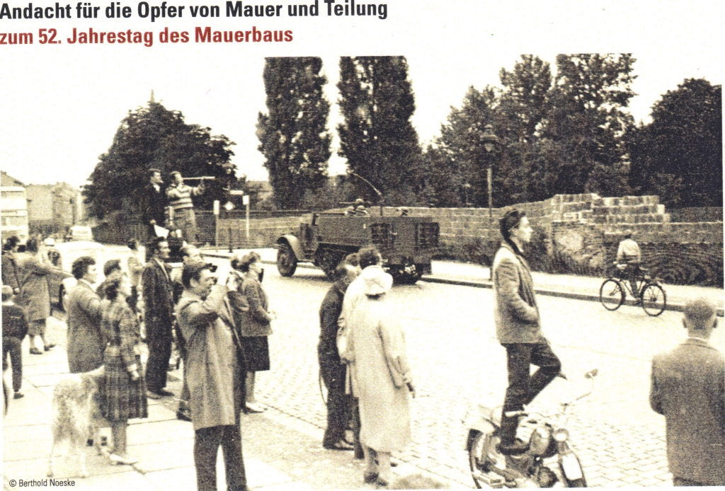 Mit einer erstaunlich funktionierenden Logistik begann in den ersten Stunden des 13. August 1961 in der Bernauer Str. der Mauerbau, der eiserne Vorhang, die Mauer für die Ewigkeit oder für 100 Jahre wie einst Erich Honecker wortwörtlich zu prophezeien wagte: „Die Mauer wird in 50 und auch in 100 Jahren bestehen bleiben, wenn die dafür vorhandenen Gründe noch nicht beseitigt sind“. Allein an der Berliner Staatsgrenze sollen 136 Menschen ihr Leben gelassen haben. Nicht in den offiziellen Statistiken ist die horrende Zahl von Familien, die von der Mauer und durch den Bau der Mauer auseinander gerissen wurden. Ganze Biographien wurden ausgelöscht.
