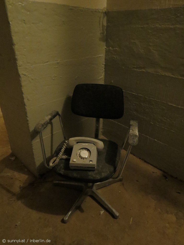 Nach dem Krieg diente der Bunker der Volkspolizei der DDR zum Teil als Notfall- und Einsatzzentrale. Teile davon sind noch im Bunker vorhanden. Ansonsten sind die Räume recht leer. Hier und da findet man noch Reste von Materialien zur Instandsetzung – Farbeimer, Baumaterialien usw. Keiner kümmert sich drum, liegt ja alles gut verwahrt in irgendwelchen Kellerräumen, die ohne weiteres nicht zugänglich sind. Wer sich den Bunker mal ansehen möchte, muss auf besondere Aktionen hoffen, wie z.B. den Tag des offenen Denkmals.