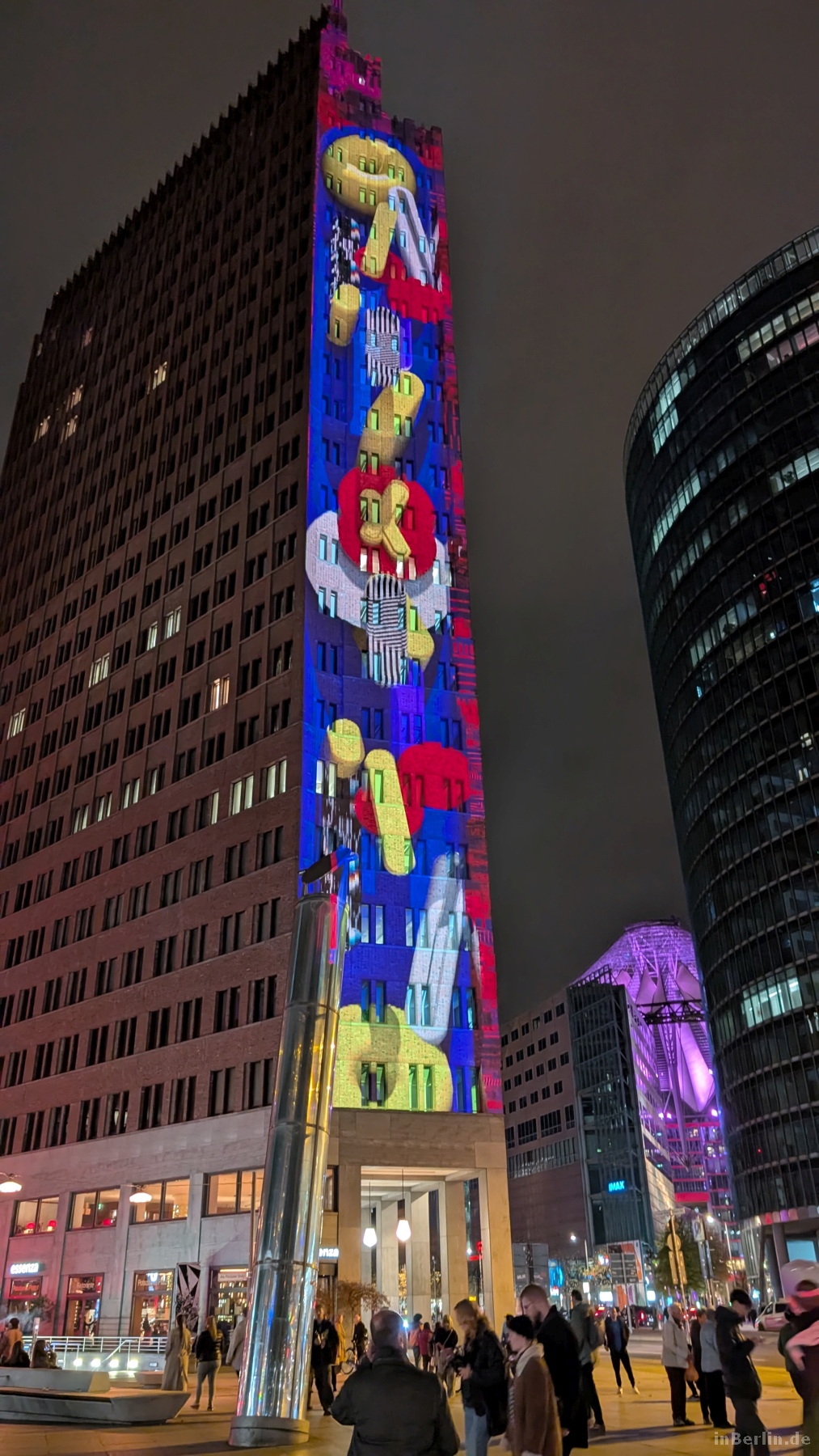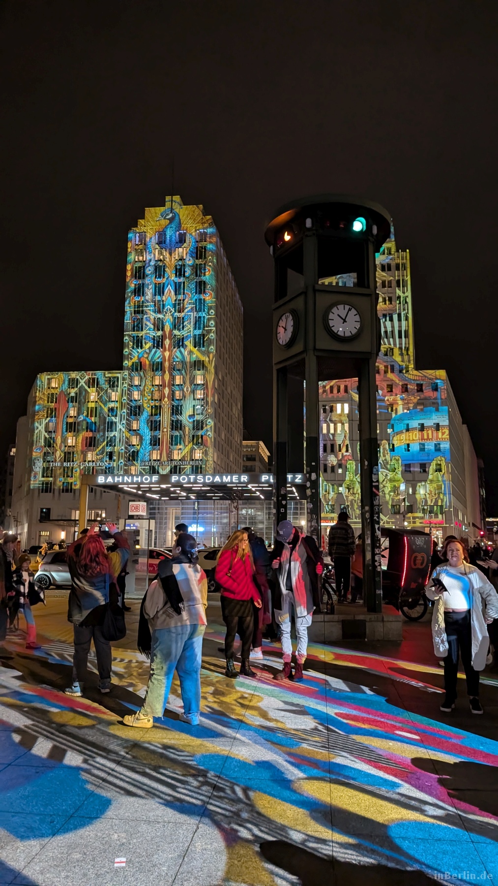 Der Potsdamer Platz zählt schon seit vielen Jahren zu den Schlüsselorten des Festival of Lights in Berlin. In 2025 wurden dort sieben verschiedene Locations mit Lichtkunst bespielt, darunter der Kollhoff-Tower, der Forum Tower, die Alte Potsdamer Straße, der Haus-Huth-Tunnel, die Piano-Lake-Installation an der Spree und weitere Fassaden rund um den Platz. Zusätzlich wurden kostenlose geführte Spaziergänge angeboten, bei denen man hinter die Kulissen der Lichtinstallationen blicken kann.